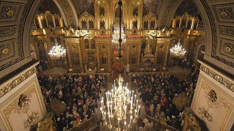 Путин и Собянин посетили пасхальную службу в храме Христа Спасителя