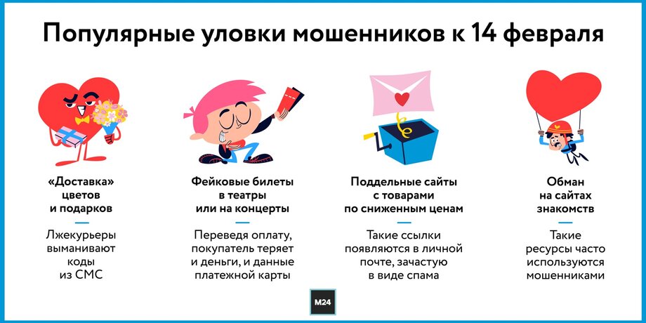 Всплеск мошеннических операций традиционно происходит перед праздниками, и такая дата, как 14 февраля, не исключение, напомнили эксперты. Какие схемы будут использовать аферисты и как обезопасить себя, разбиралась Москва 24.