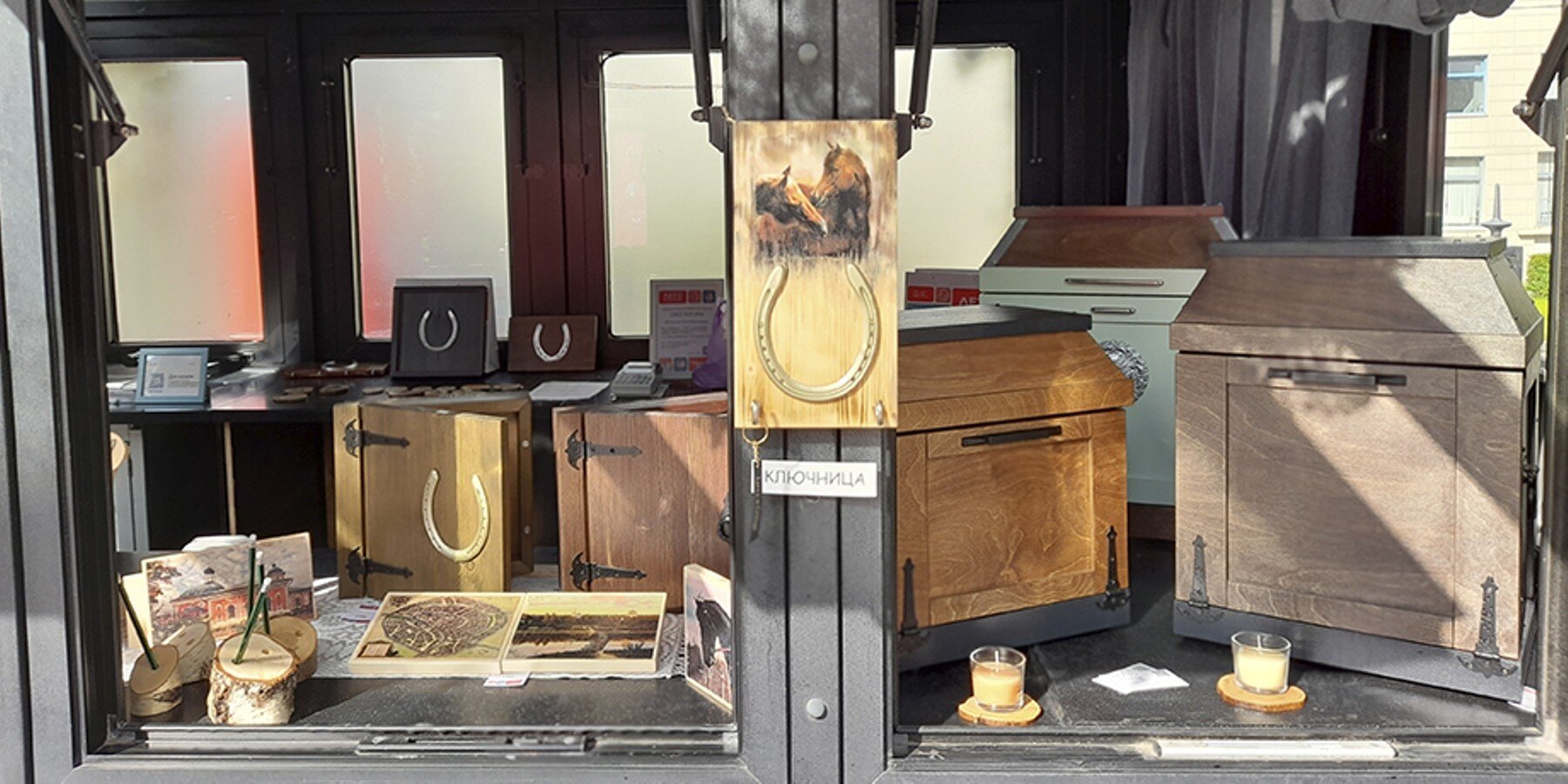 Деревянные изделия мастерской "Светлогоры" были представлены этим летом на площадке в Черемушках. Владелец художественно-ремесленной мастерской Сергей Козлов создает ларцы и сундуки в современном дизайне, которые являются достаточно сложными по конструкции.