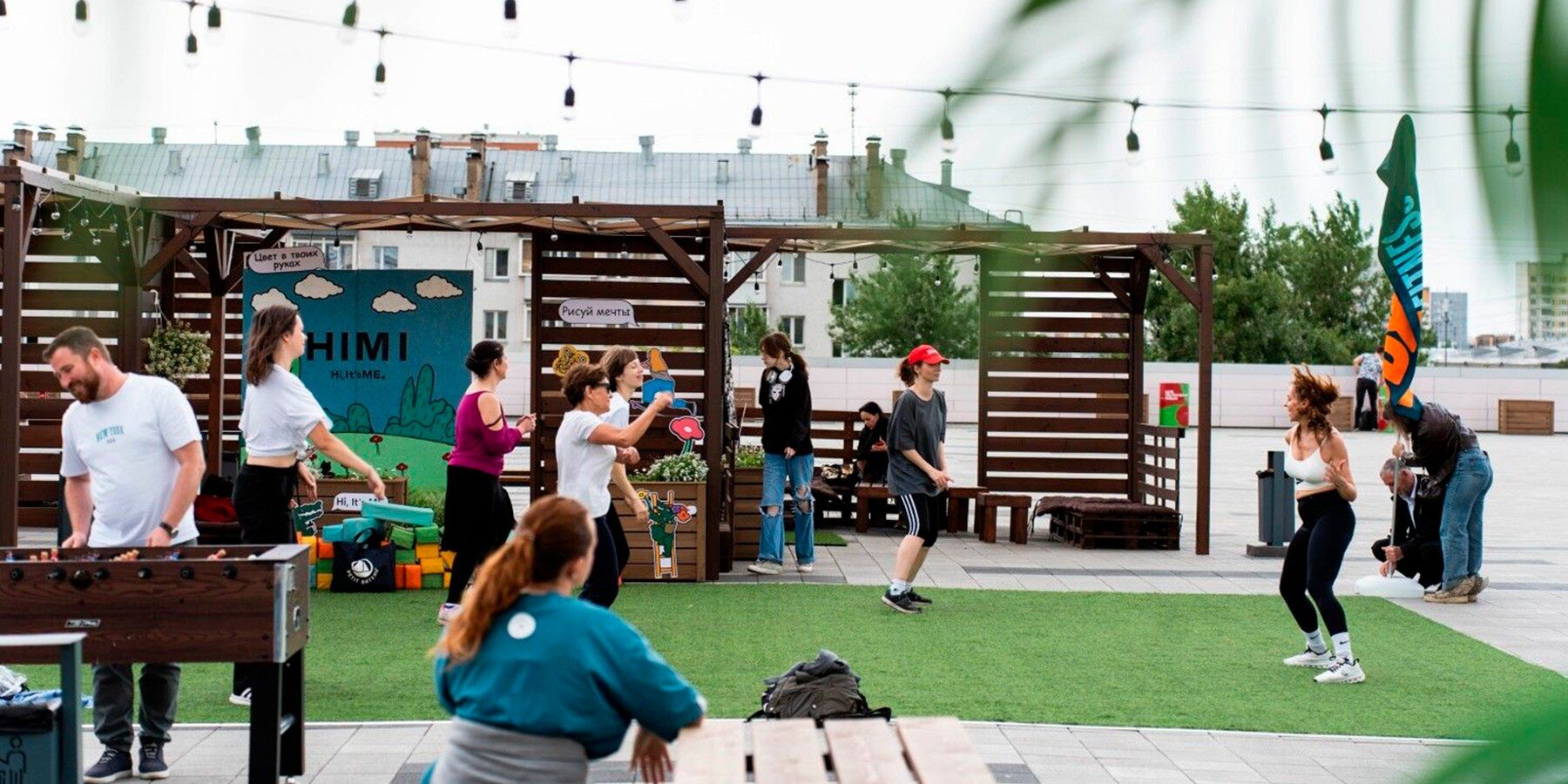 Гостей проекта ждут утренние тренировки на свежем воздухе, творческие мастер-классы и анимационные программы для детей, а также настольные игры и лекции. По вечерам на площадках организовывают кинопоказы под открытым небом, а также приглашают стать слушателями музыкальных сетов. Любителей красивых видов в выходные приглашают на крыши, которые превращаются в своеобразную сцену для различных мероприятий – живых концертов, стендапов и тематических фестивалей.