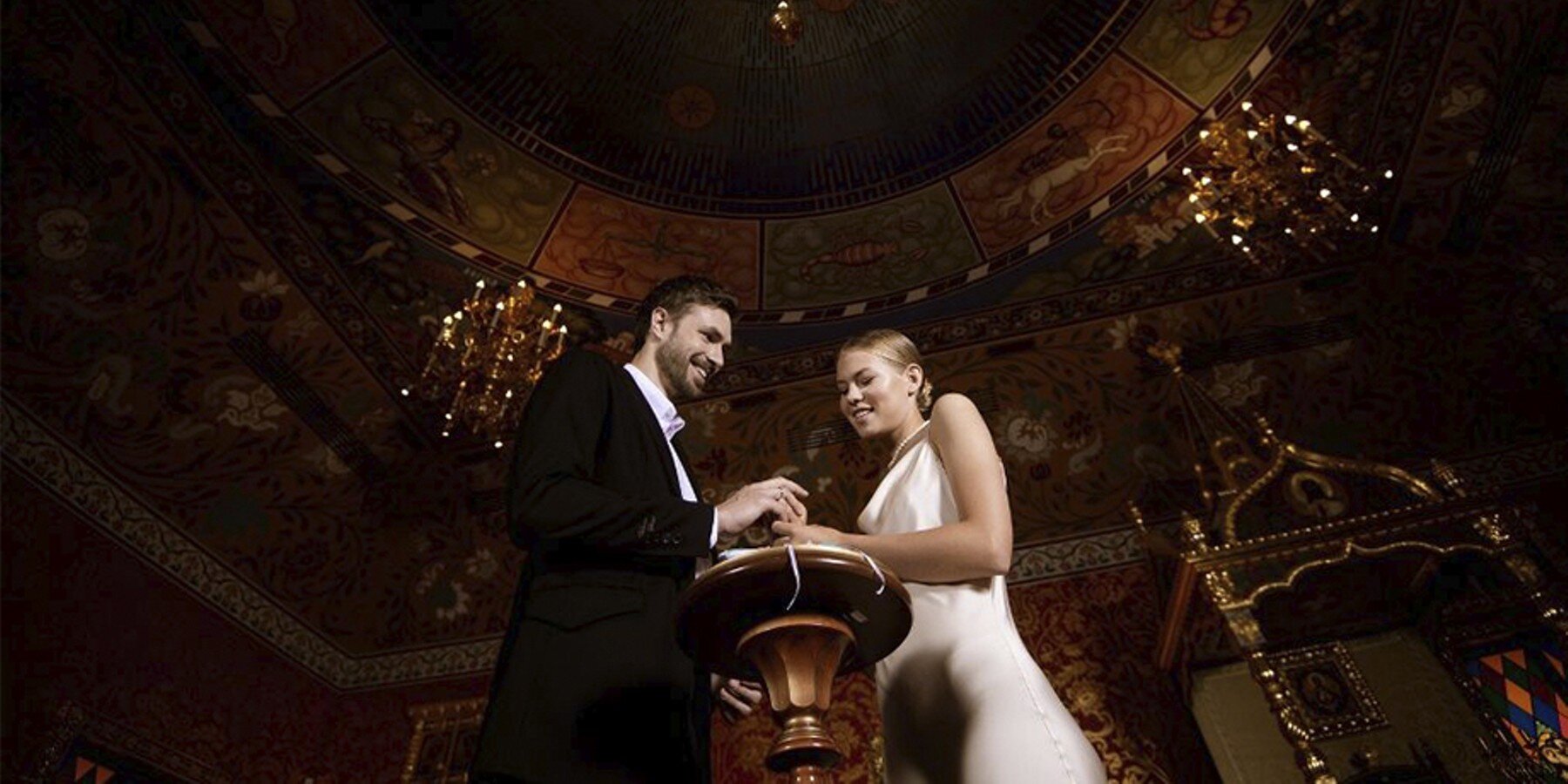 Среди других площадок – павильон "Космос" на ВДНХ. Здесь церемонии проходят в подкупольной части здания на фоне вращающейся модели Земли. А за счет подиума-монолита, который слегка приподнят над основным пространством, влюбленные могут даже почувствовать себя в невесомости.