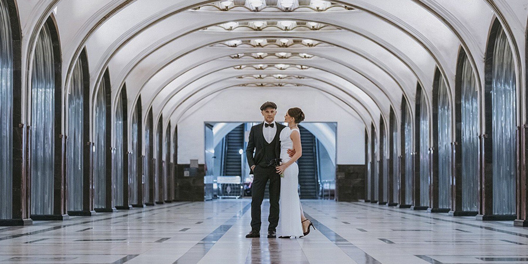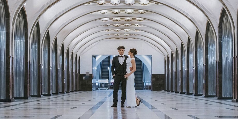 Четыре церемонии бракосочетания провели сотрудники столичных загсов на станции метро "Маяковская" в ночь на 5 октября. Торжественности придает архитектура эпохи авангарда и праздничное оформление, плюс ко всему для антуража на путях стоят поезда "Москва-2020" и "Москва-2024". В них молодожены провели свадебные фотосессии.
