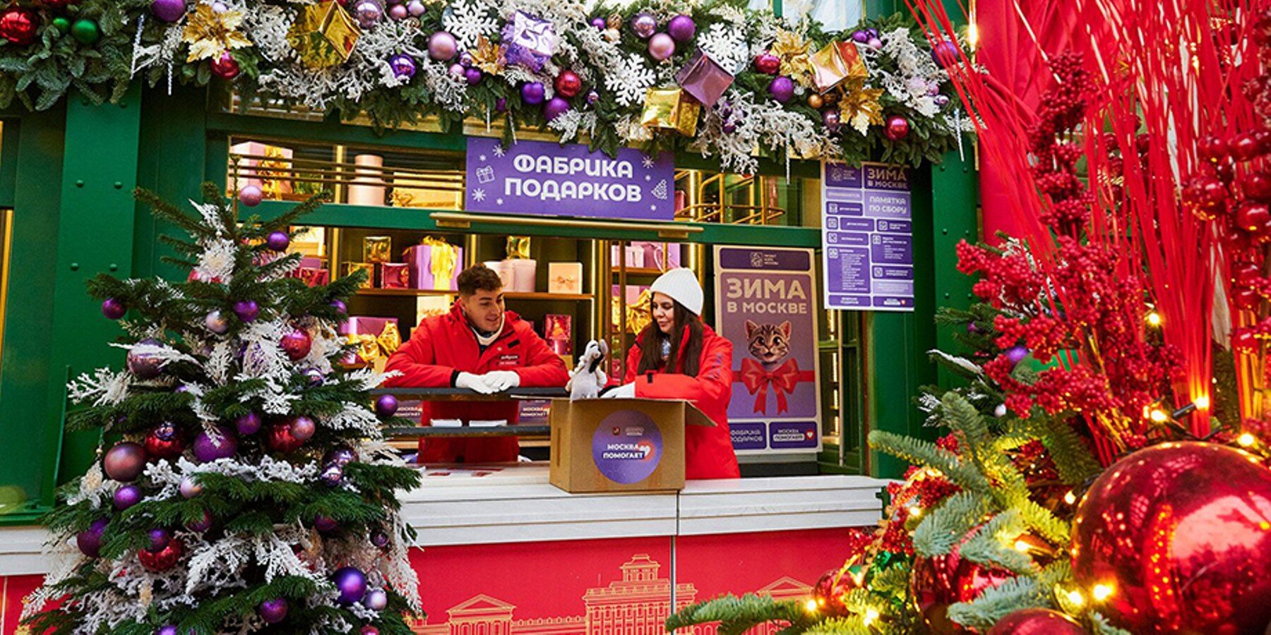 Среди других благотворительных акций "Зимы в Москве" – сбор подарков в павильонах "Фабрика подарков" проекта "Москва помогает". Посылки формируют для детей в новых регионах России и участников специальной военной операции. Все желающие могут не только передать подарки, но и подписать открытки с теплыми пожеланиями адресатам. Помимо этого, помочь можно и приютам для животных.
