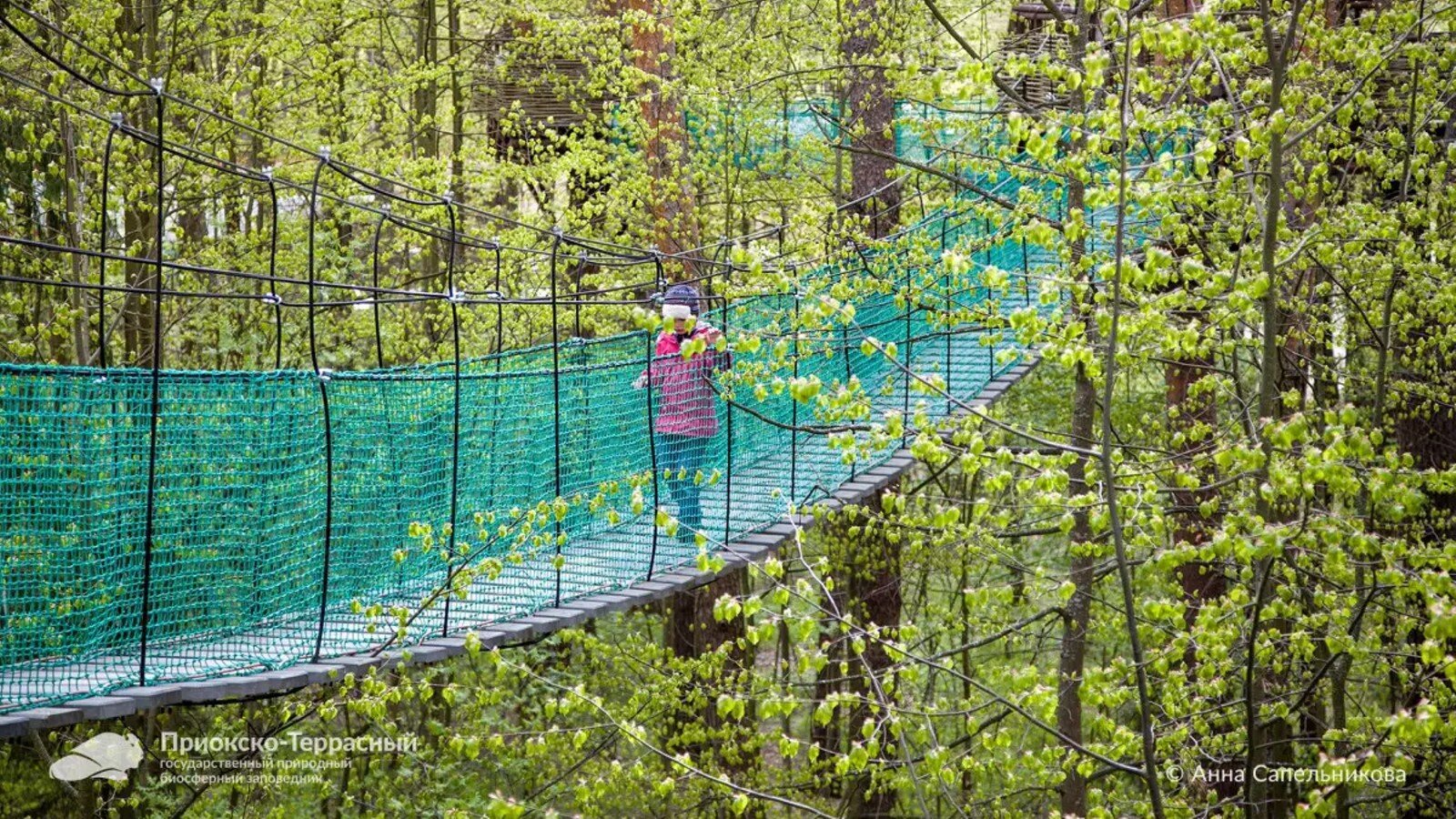 Здесь же находится экотропа "Сквозь листву". С деревянных мостков, подвешенных примерно на восьмиметровой высоте, можно потрогать кроны деревьев. Маршрут обустроен по круговому принципу и включает 10 смотровых площадок, на каждой из которых стоят таблички с информацией о флоре и фауне региона. Плюс предусмотрены и интерактивные элементы – звуковые системы воссоздают голоса обитающих в округе птиц.