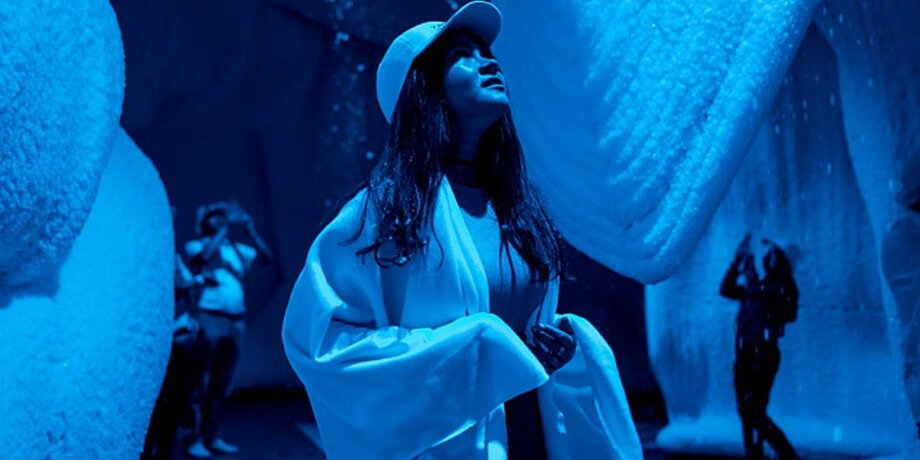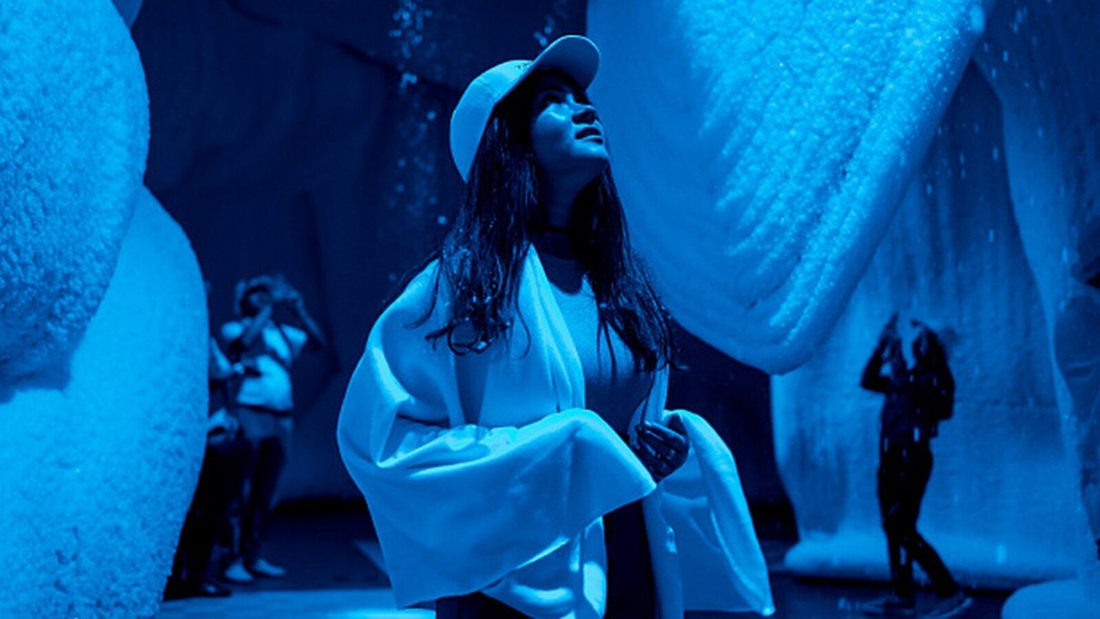 Арт-инсталляция "Ледяная пещера" позволяет ощутить бодрящий холод в разгар жаркого лета. На создание рельефа площадью 750 квадратных метров ушло около 70 тонн воды.