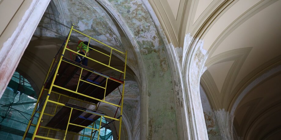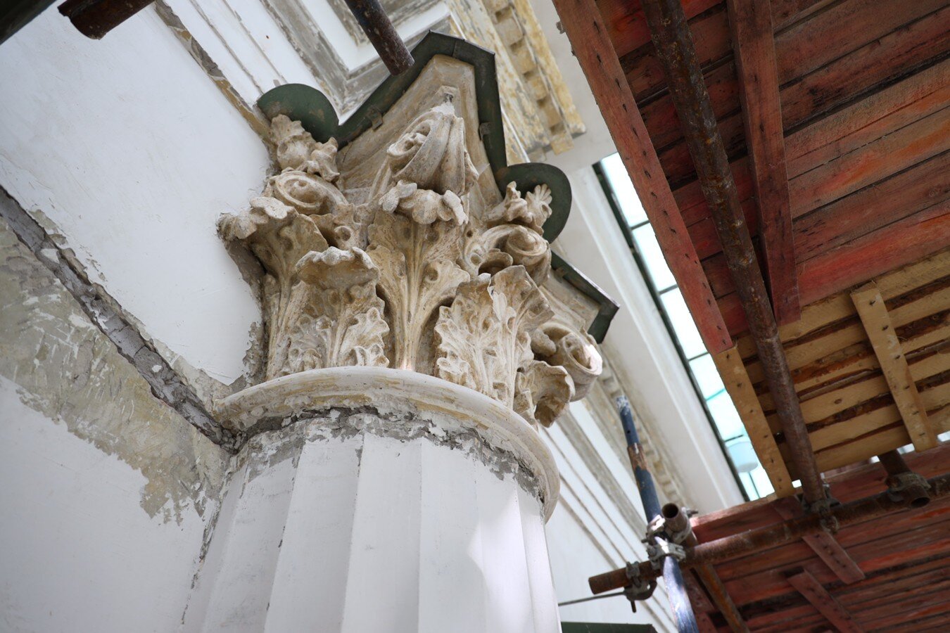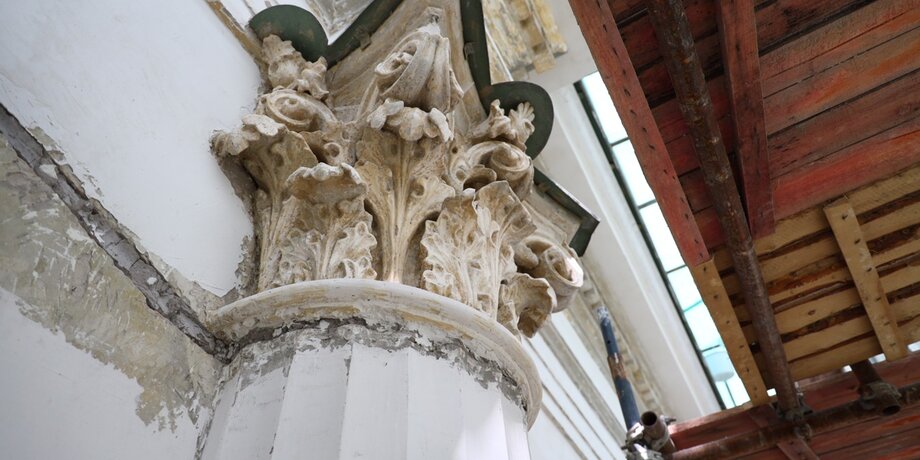 "В ходе расчистки капителей были выявлены следы более ранней реставрации, а также значительное количество оригинальной авторской лепнины. Уровень сохранности составляет 60–80%. Несмотря на большое количество утрат и замен, они в основном относятся к предыдущим этапам реставрации. В частности, многие акантовые листья были заменены на элементы из других материалов", – пояснила художник-реставратор Алиса Хандлос.