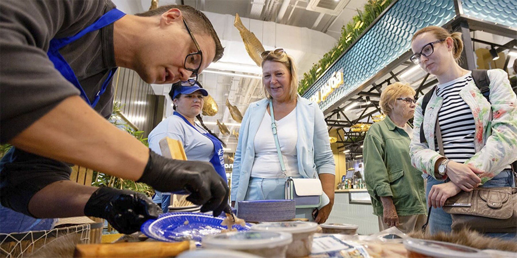 Рынок "Москва – на волне" в Косино-Ухтомском приглашает провести субботу на дегустациях морепродуктов и холодных закусок. Организаторы обещают котлеты из рубленого мяса моллюска в хрустящей оболочке, филе минтая в золотистой панировке, чебуреки и многое другое.
