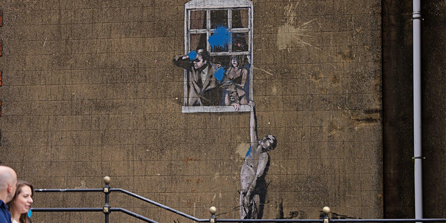 Это граффити было нанесено на стену венерологической клиники на Парк-стрит в центре Бристоля. На картине изображен голый любовник, свисающий с подоконника, в то время как ревнивый муж выглядывает из окна, за его плечами – жена в нижнем белье.