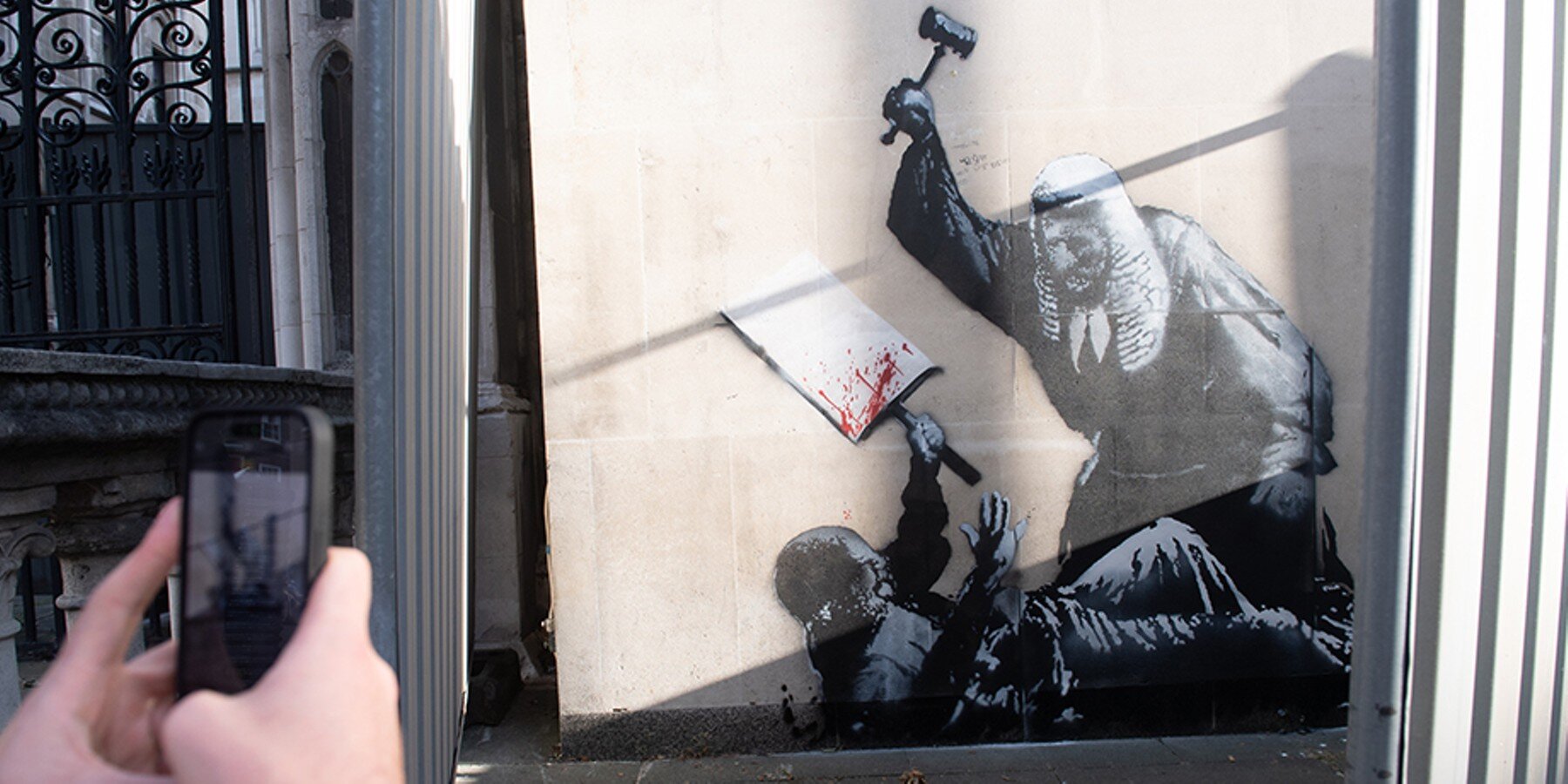 Новая работа Бэнкси появилась на стене здания Королевского суда в Лондоне утром 8 сентября. На граффити изображен судья в мантии и парике, который избивает молотком лежащего на земле протестующего. Работа не имеет прямой отсылки к конкретному поводу, однако появилась спустя несколько дней после массовых задержаний на пропалестинских митингах, писали СМИ.