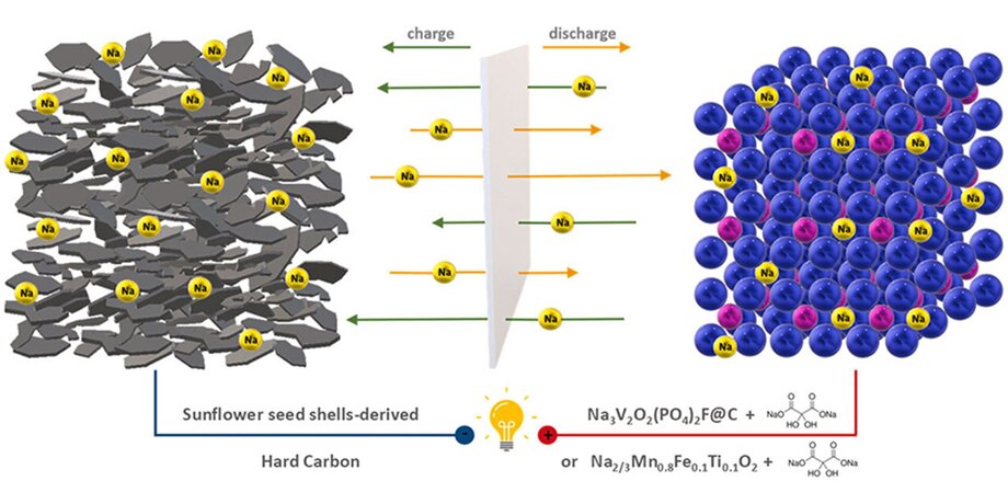 Как вообще это возможно? Любые батареи состоят из катода, анода и электролита, который позволяет заряду перемещаться от одного полюса к другому, генерируя электрический ток. Для анода и катода используют цинк, медь, сложные оксиды металлов и так далее. А для натрий-ионных батарей в качестве анода можно использовать графит – проще говоря, углерод, который получается добыть и из биоотходов.