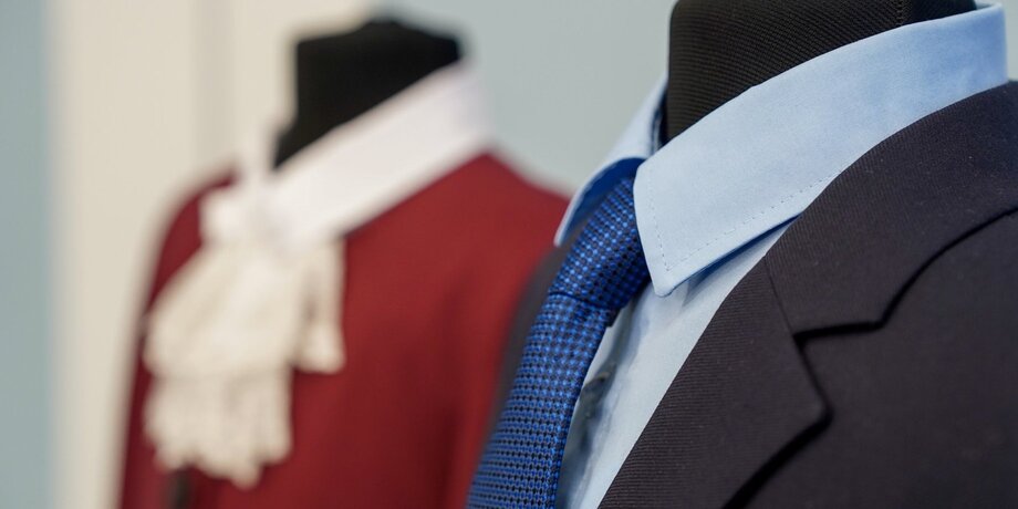 6 августа Минпросвещения показало, как может выглядеть школьная форма, сшитая по разработанному Роскачеством ГОСТу. В ведомстве представили синий брючный костюм с галстуком для мальчиков и бордовый с юбкой и жабо – для девочек.