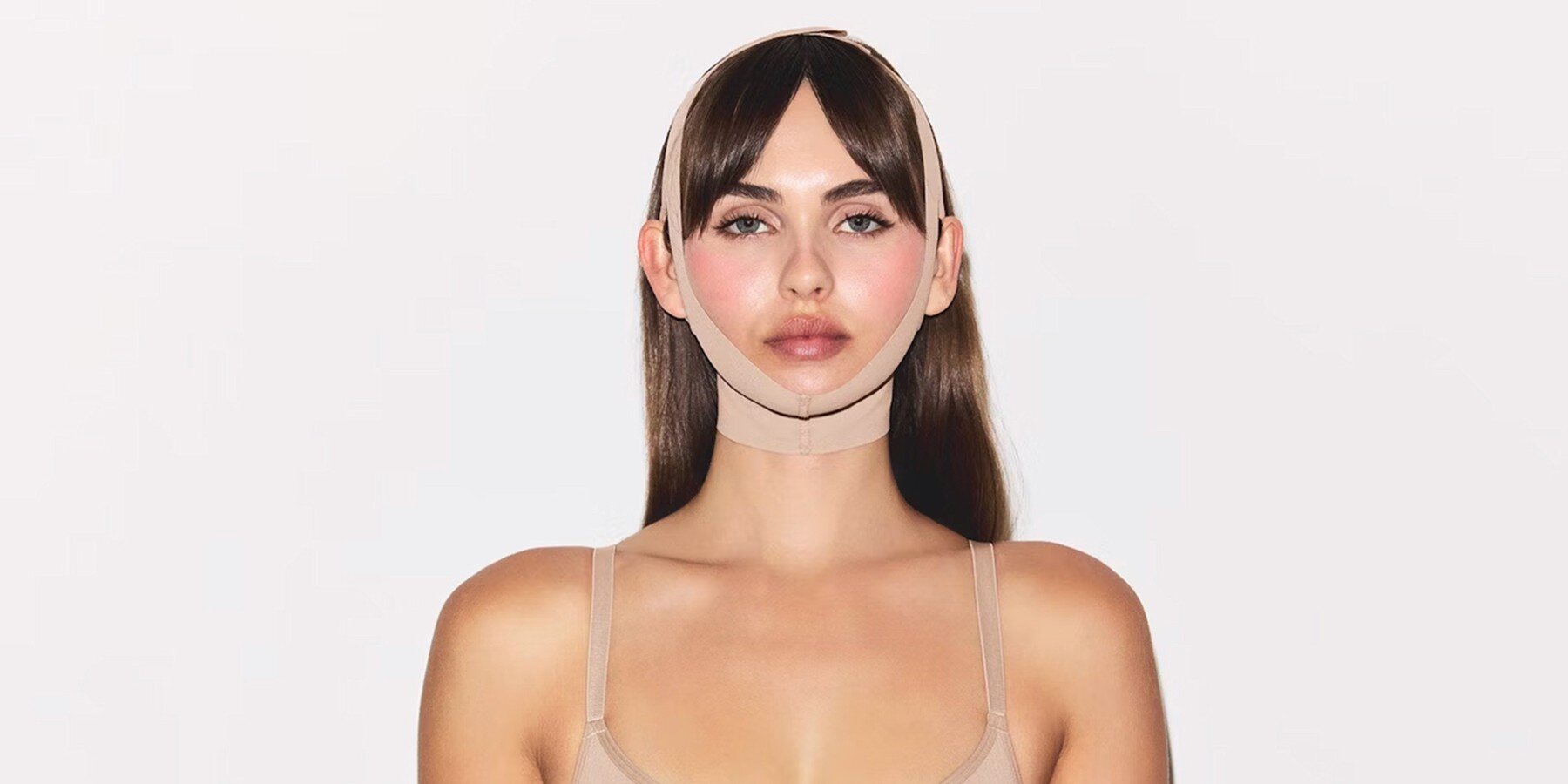 Предприниматель, актриса и блогер Ким Кардашьян выпустила первый бьюти-продукт в своем бренде: фотографии новинки – бандажа для лица – появились на странице ее компании. Производители утверждают, что это "первая в истории инновация для лица, изготовленная из фирменной моделирующей ткани и обогащенная коллагеновыми нитями для ультрамягкой поддержки челюсти", приобрести которую можно за 48 долларов.