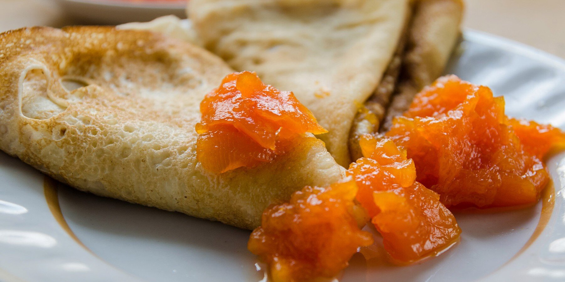 Французские блины "Креп Сюзетт" с апельсиновым соусом. Для их приготовления понадобится 350 миллилитров молока, 120 граммов муки, 50 граммов сливочного масла, две столовых ложки сахара, два яйца, щепотка соли. Для соуса нужно 200 граммов сахара, 60 миллилитров апельсинового сока, одна столовая ложка лимонного сока и цедра одного апельсина.