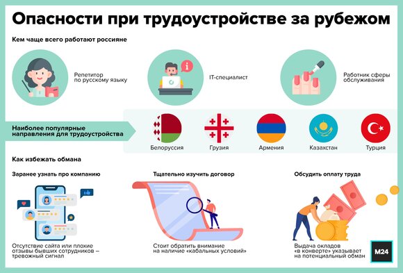 При этом в отдельных странах соискатели рискуют столкнуться с мошенничеством, включая попадание в трудовое рабство, подтвердил Мурадян. По его словам, в первую очередь это касается государств со слабой правовой системой, включая Ливию, Судан, Эфиопию, Египет, а также Мьянму. Встречаются прецеденты и в ОАЭ, и в особенности в Дубае, утверждает эксперт.