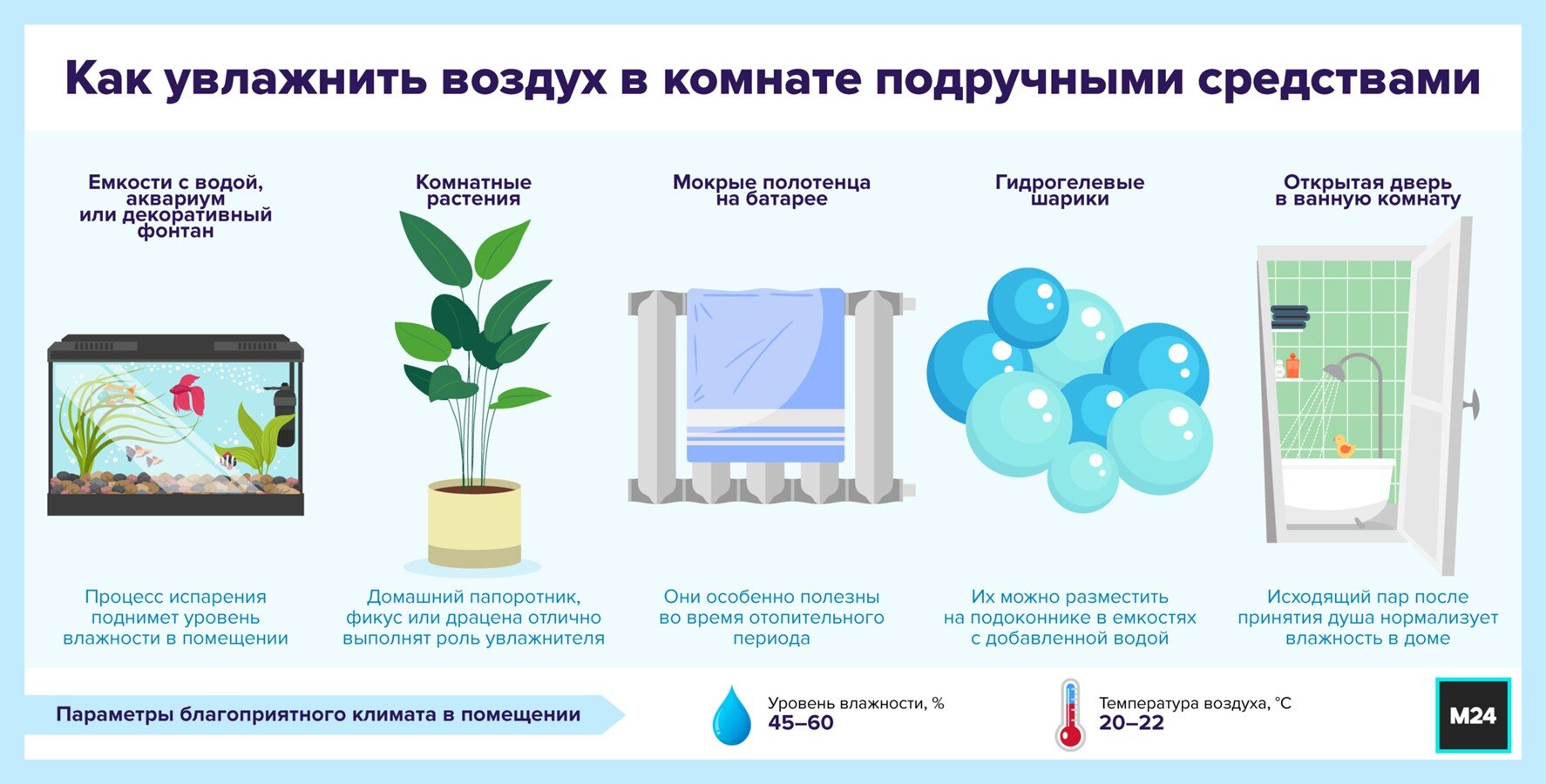 Регулярное проветривание помещения и увлажнение воздуха позволят избежать раздражения слизистых оболочек, обезвоживания и сухости кожи, утверждают специалисты. О том, как настроить правильный микроклимат в доме, – в материале Москвы 24.