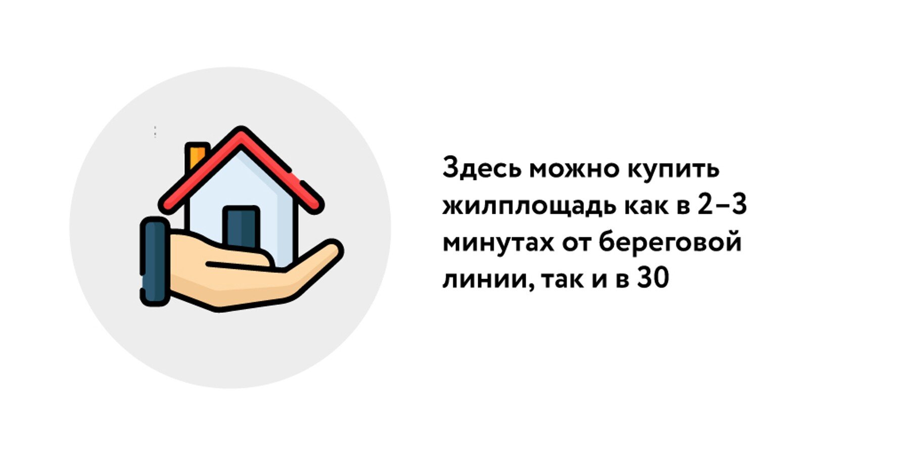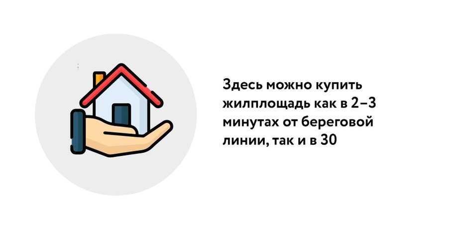 "Лучше, конечно, рассматривать развивающиеся микрорайоны "3А" и "3Б", которые расположены в 20–30 минутах от моря. Это место сейчас активно застраивается новыми объектами. А в непосредственной близости от набережной новостроя нет", – отметил эксперт.