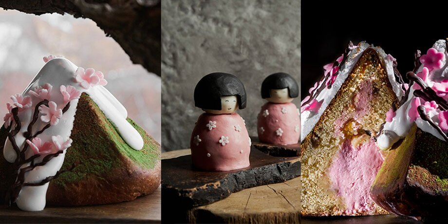 Другой вариант десерта выполнен в форме традиционных деревянных куколок кокэси с жидкой вишневой начинкой. Его можно приобрести за 5 500 рублей.