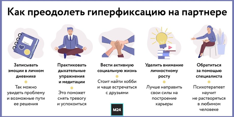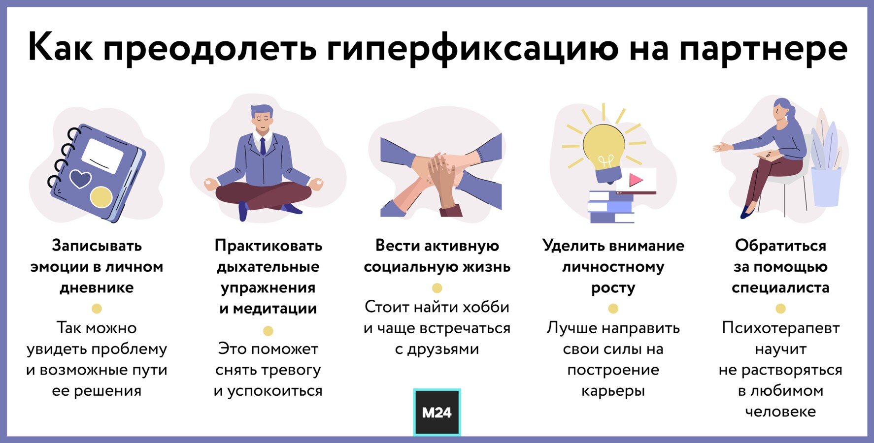 При этом Добродская подчеркнула, что в случае гиперфиксации обязательна психотерапия. Специалист поможет разобраться с проблемой, научиться не растворяться в партнере и оставаться самим собой, находясь в отношениях с любимым человеком.