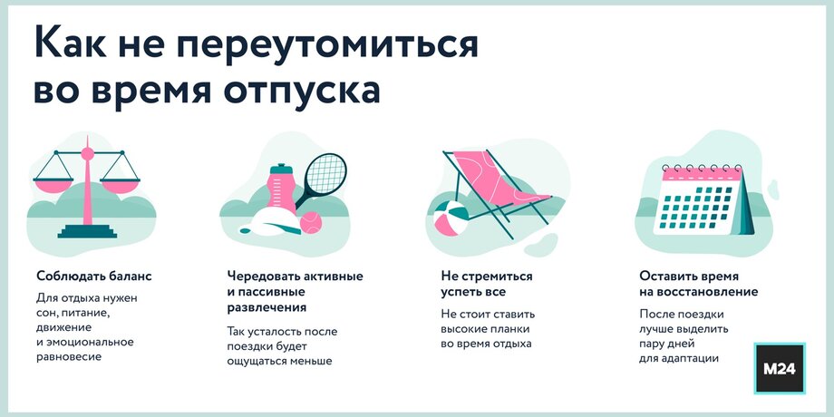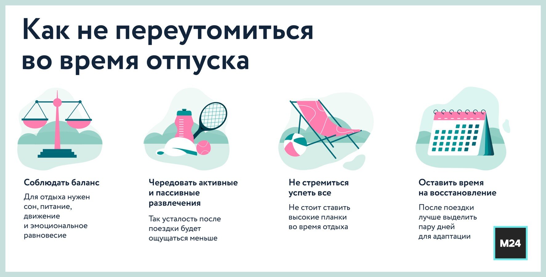 Идеальный отпуск, по мнению врача, должен состоять из двух этапов: первые 7–10 дней стоит посвятить поездкам и активному отдыху, но потом 3–4 дня провести время дома и восстановиться.