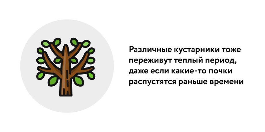 "Различные кустарники тоже переживут этот период, даже если какие-то почки распустятся раньше времени: у растений всегда есть запасные, и урожай следующего года в целом не пострадает. Вымерзнуть сейчас ничего не может, потому что нет критических морозов без снега. Страшно не отсутствие снега само по себе, а его отсутствие в сочетании с сильными морозами. Поэтому общая рекомендация – не паниковать, а если что-то начало расти, просто прикрыть", – объяснила она.