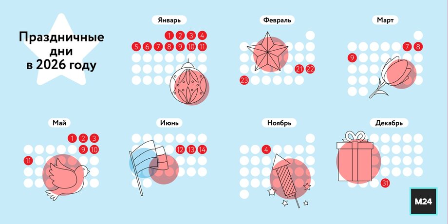 В 2026 году россиян ждут несколько длинных выходных. Когда наступят следующие праздники и в какие месяцы наиболее выгодно отдыхать в наступившем году, расскажет Москва 24.