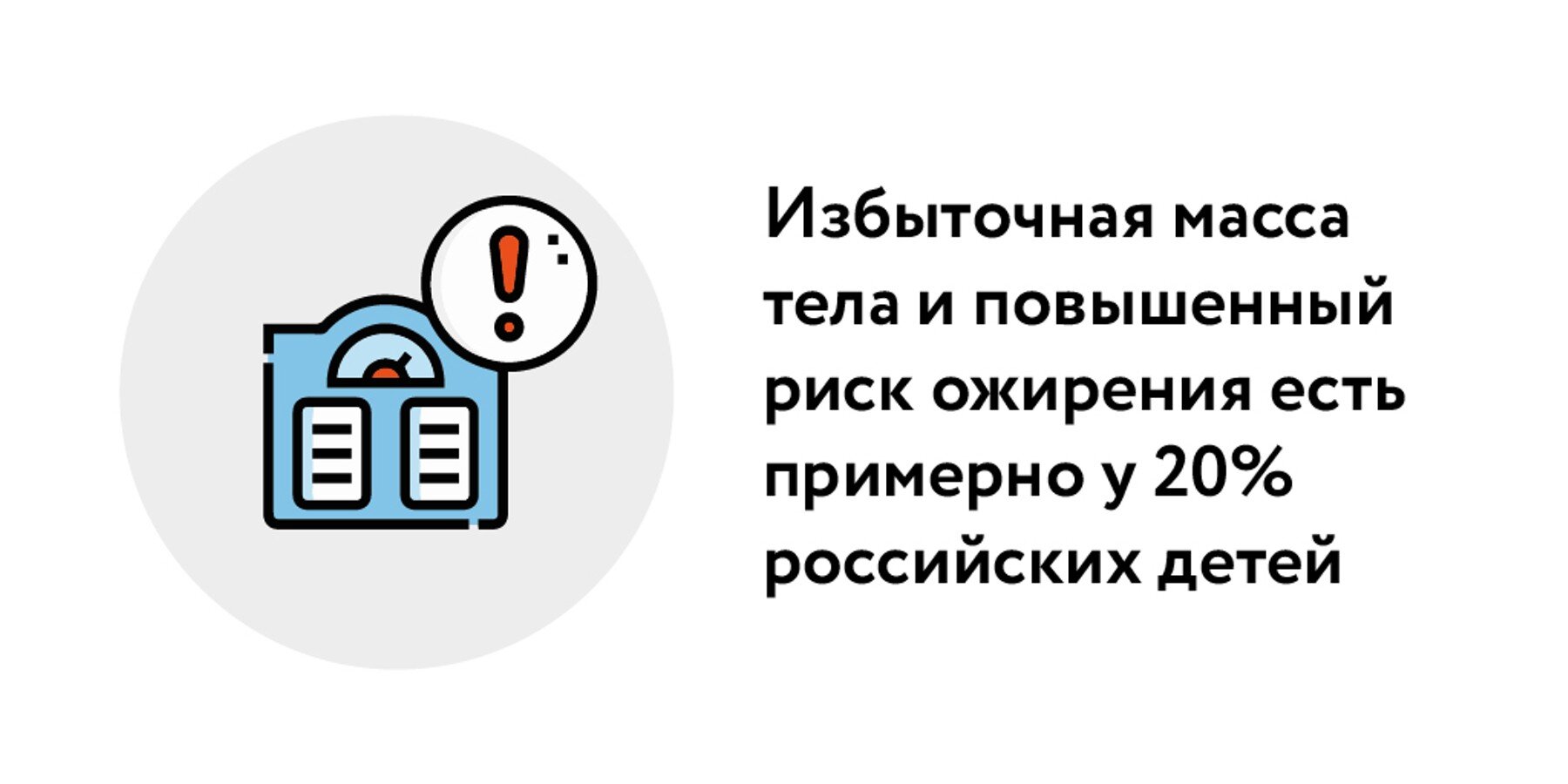 В настоящее время избыточная масса тела и повышенный риск ожирения есть примерно у 20% российских детей, сообщила ранее ТАСС главный внештатный детский специалист-эндокринолог Минздрава России Валентина Петеркова. Само же ожирение официально диагностировано у 6ؘ–8% юных жителей страны, что равно 1,5 миллионам человек.