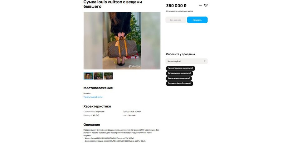 Еще одна причина продажи подарков – расставание с партнером. Одни рассказывают, что хотят избавиться от презента, чтобы он не напоминал о бывшем возлюбленном, другие утверждают, что отношения завершились до Нового года, и вырученные от продажи деньги хотят потратить на подарок себе. Например, жительница ЦАО решила продать брендовую сумку, наполненную вещами бывшего.