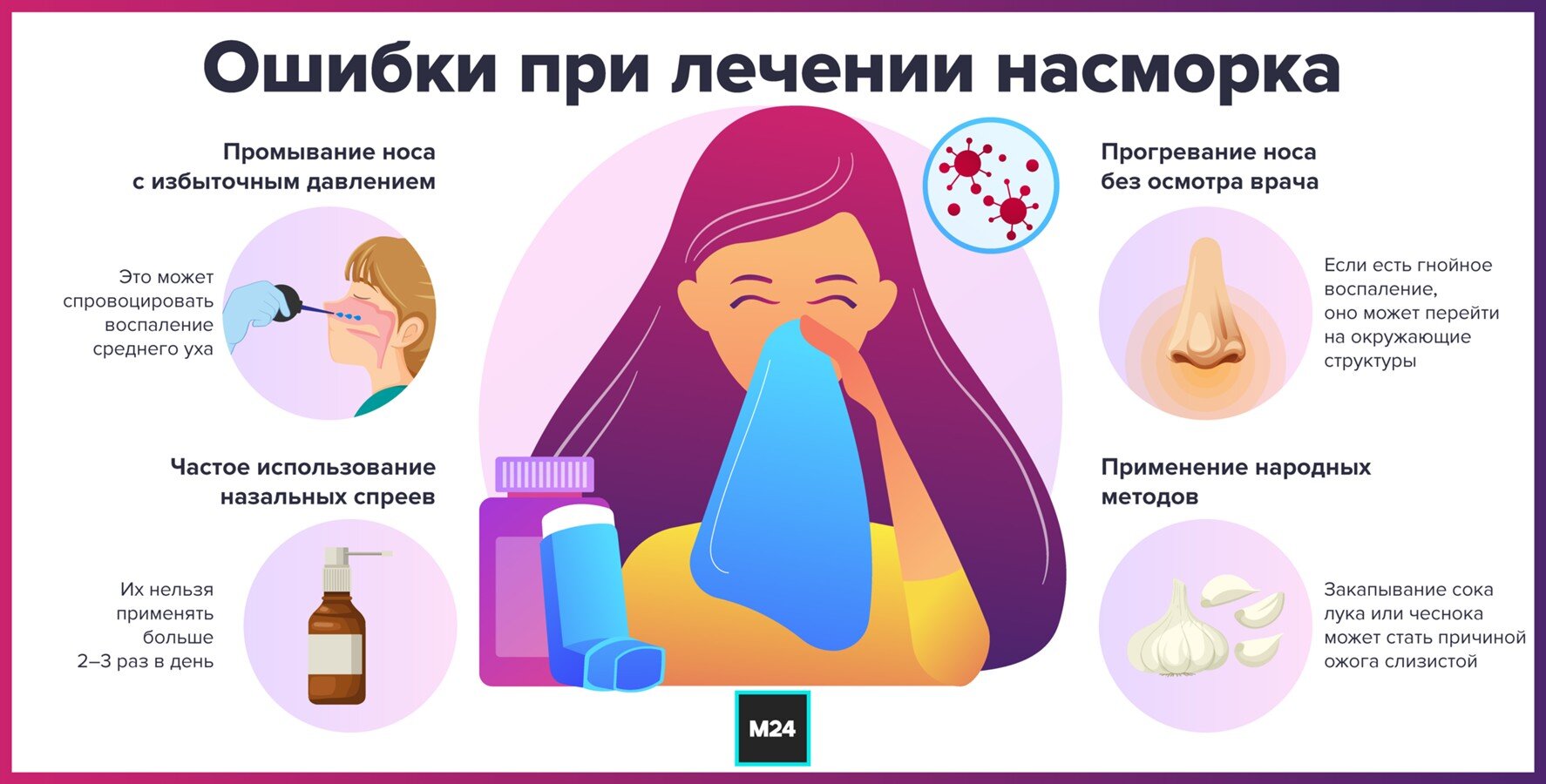 Кроме того, не нужно прибегать к народным методам: например, закапывать в нос различные соки лука или чеснока, поскольку это станет причиной ожога слизистой, предупредил эксперт.