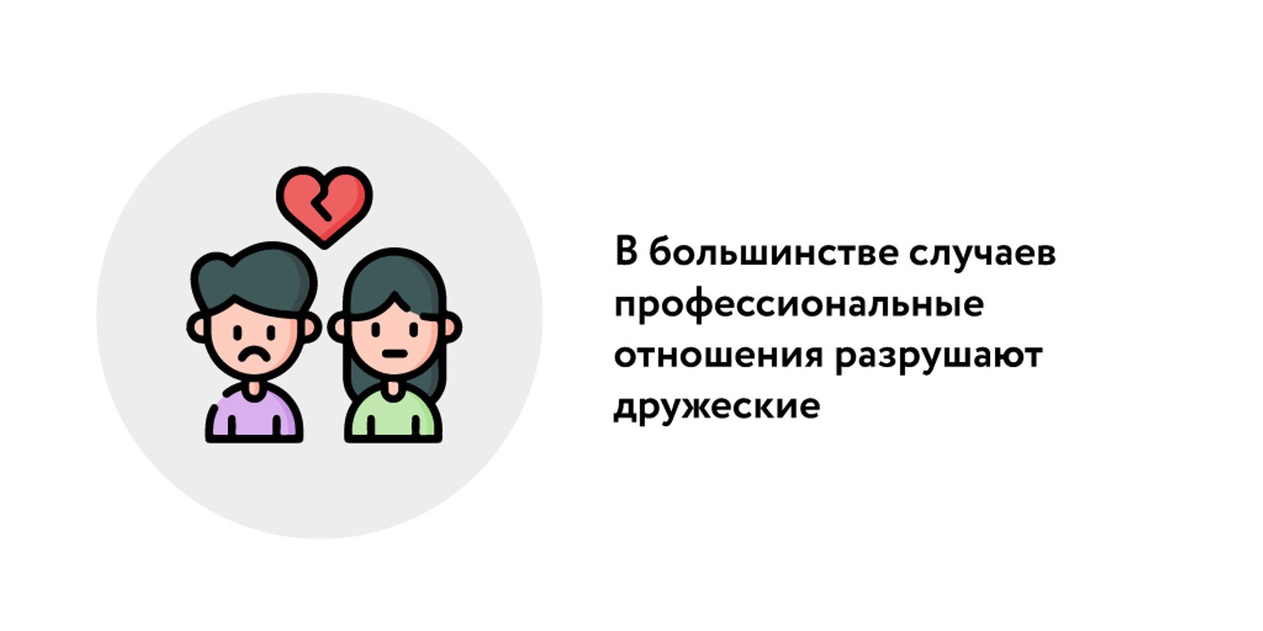 В целом в большинстве случаев профессиональные отношения разрушают дружеские, заявила психолог. Кроме того, подобного рода связь между начальником и подчиненным может вредить рабочему процессу, так как границы размываются.