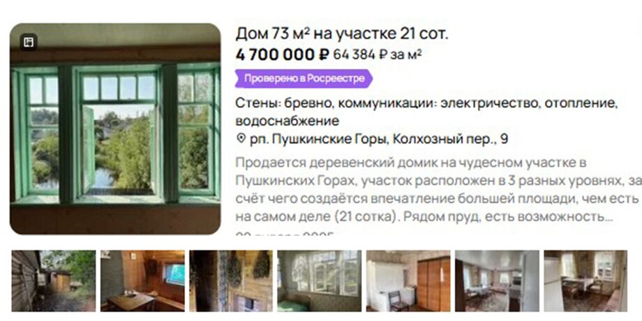 Например, в Пушкинских Горах (Псковская область) стоимость старого дома за два года поднялась с 500–700 тысяч до 1,5–4,5 миллиона рублей. В Саратовской области можно найти предложения от 150 тысяч, а под Тверью бревенчатый дом с удобствами на улице продают за 3,5 миллиона.