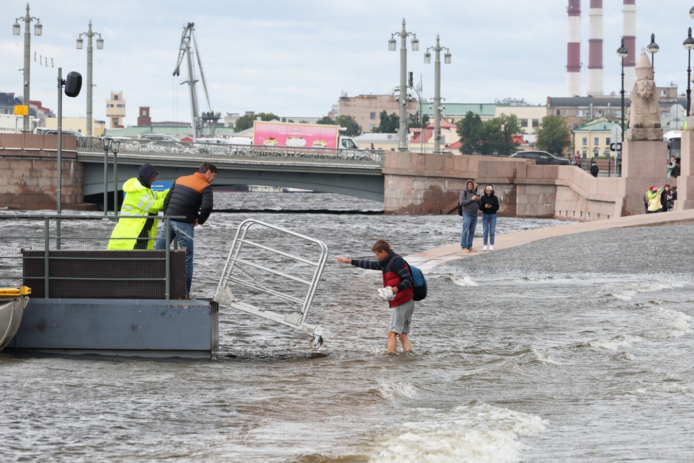Отдельные смельчаки, несмотря на непогоду, и вовсе решили искупаться. К примеру, в распоряжении Москвы 24 есть кадры с набережной Невы, где люди плещутся в воде недалеко от берега.