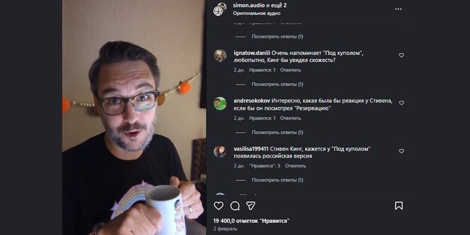 "Интересно, будет ли концовка "Резервации" похожа на "Под куполом", сценаристы явно вдохновились идеей Стивена", "хочется увидеть реакцию автора", "Резервация" – это тот же "Под куполом", только по-русски. Стивен Кинг, это стоит твоего внимания!", "было бы реально интересно посмотреть, как бы Кинг оценил российскую вариацию его книги", "мы требуем мнение Стивена о сериале "Резервация", – написали комментаторы.