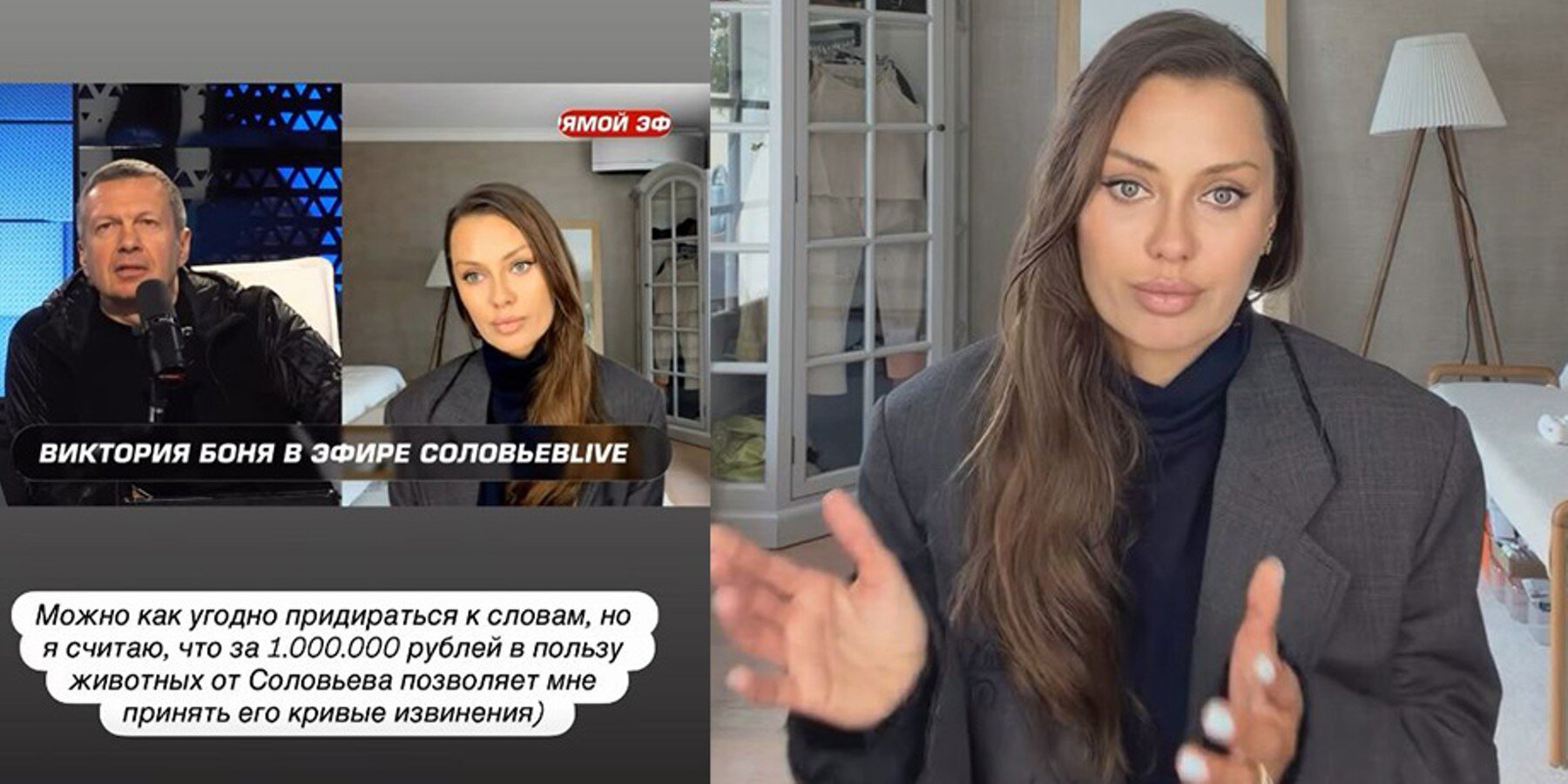 В свою очередь Боня призвала Соловьева извиниться перед премьер-министром Италии Джорджей Мелони, в адрес которой телеведущий ранее тоже допустил оскорбительное высказывание. Виктория заявила, что позиция, когда россиянок оскорблять нельзя, а иностранок – можно, неправильная. Соловьев ответил, что Боня воспринимает Мелони как женщину, но та в первую очередь является политиком.