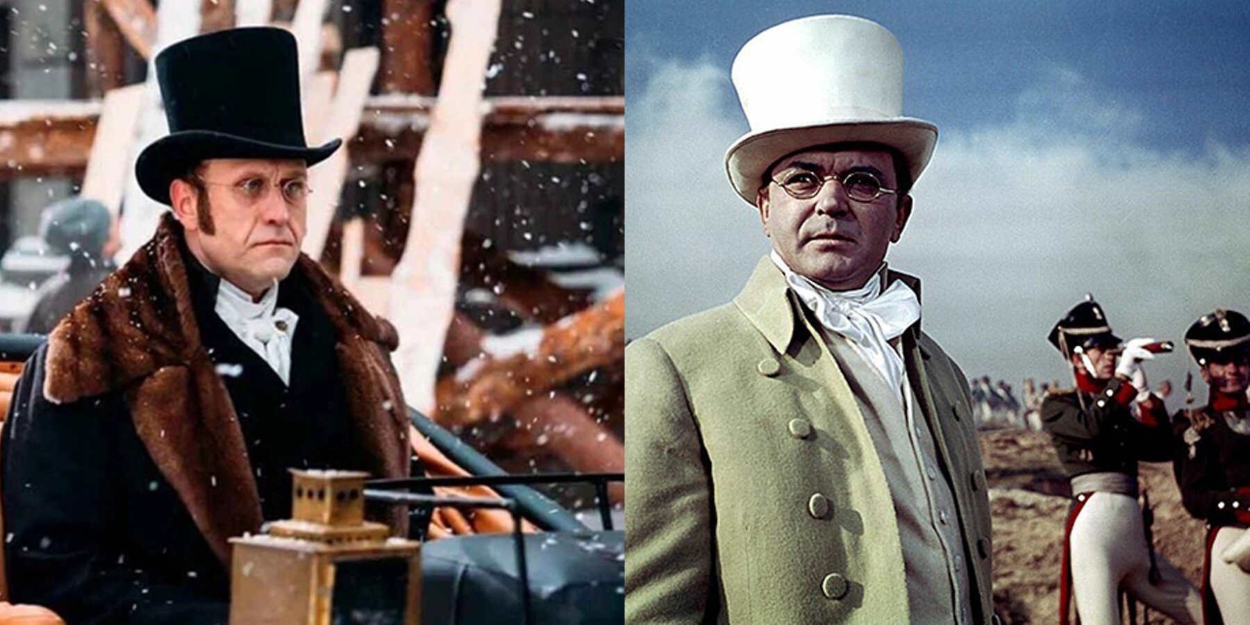 Фото: кадр из фильма "Война и мир"; режиссер – Сарик Андреасян; производство – Кинокомпания братьев Андреасян; кадр из фильма "Война и мир: Пьер Безухов"; режиссер – Сергей Бондарчук; производство – Мосфильм