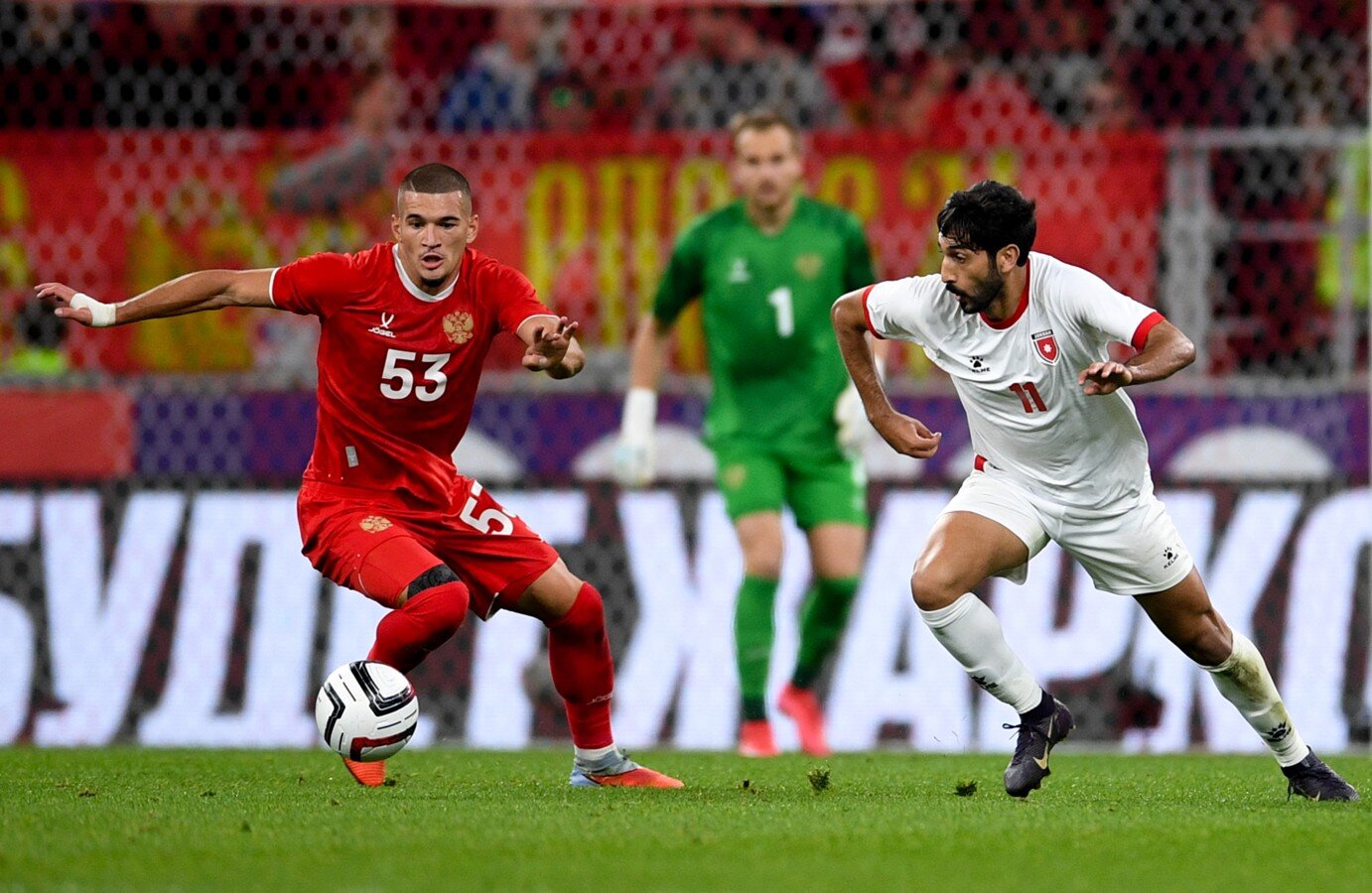 И болельщики, не только "Динамо", а вообще все, и рады бы забыть о клубных делах и просто наслаждаться футболом. Но первый тайм в исполнении России вызвал много вопросов. Наши парни объективно проигрывали сопернику в движении и скорости, и допускали нетипично много для себя ошибок и обрезов как на чужой половине, так и на своей. Хозяева могли пропустить уже в самом дебюте после огреха при розыгрыше мяча у своей штрафной, и лишь грамотное сокращение дистанции в исполнении голкипера Александра Максименко не позволило Али Олвану открыть счет.