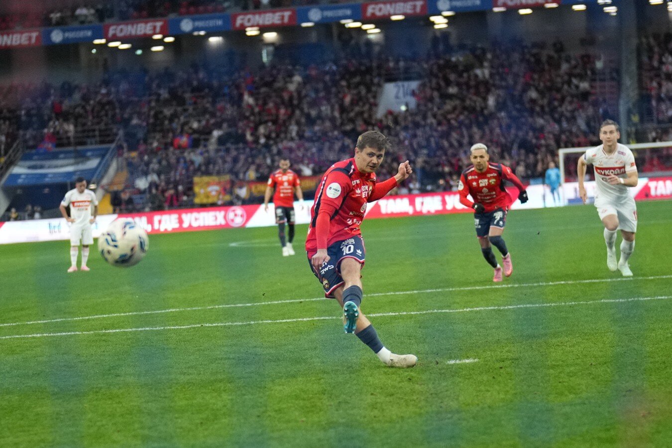 Практически в следующей же атаке Жедсон Фернандеш неаккуратно сыграл на линии штрафной против Алеррандро, который вышел на поле минутами ранее вместо получившего травму Мусаева. Главный арбитр встречи Артем Чистяков после просмотра VAR показал на 11 метров, и Обляков исполнил его чисто – 2:0 на 12 минуте! А на 18-й "Спартак" неаккуратно отбился после очередного наката "армейцев", Алеррандро бил в дальний вторым темпом, и Круговой подставил ногу словно клюшку в хоккее – 3:0! Таким образом, красно-синие поразили ворота Александра Максименко первыми же тремя ударами.