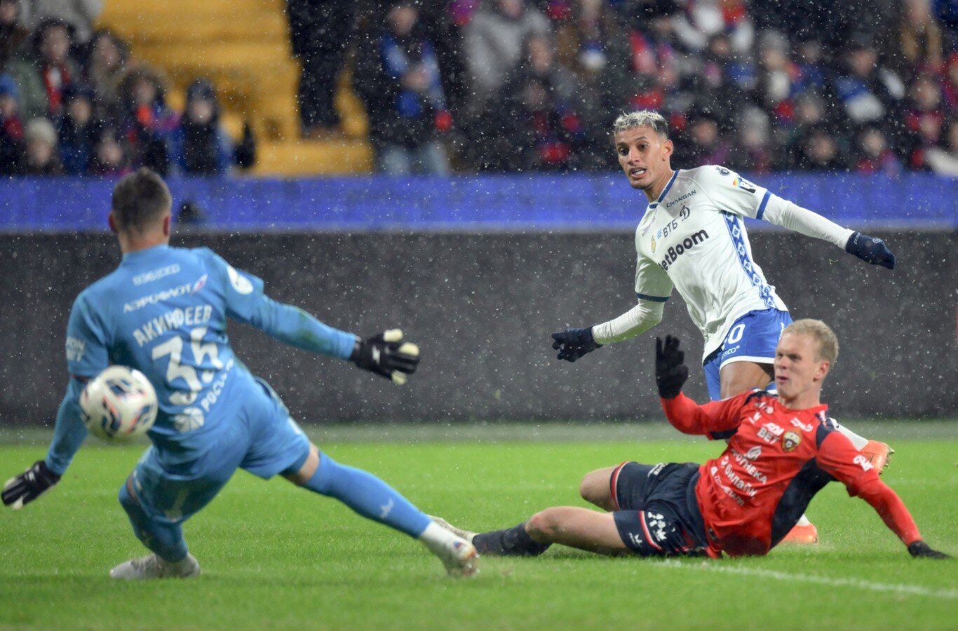 Гол взбодрил интригу, но ненадолго. Убил ее, по сути, неаккуратный пас центрального защитника Матеуса Рейса на 66-й минуте. Бразилец вместо Матвея Кисляка отдал чужому, "Динамо" быстро раскрутило контратаку, выведя Бителло на ударную позицию через правый полуфланг, а бразилец здорово пробил в дальний угол, – 1:3.