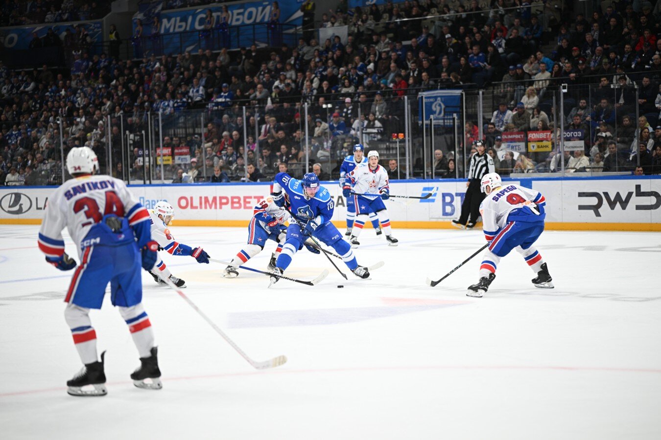 Оппоненты встречались друг с другом совсем недавно: 4 ноября бело-голубые победили красно-синих на выезде 2:1. И первый период тоже дал болельщикам "Динамо" повод для оптимизма. СКА выглядел неплохо, но в атаке не сказать что сильно напряг голкипера хозяев Владислава Подъяпольского. А вот его визави Егор Заврагин в одном конкретном эпизоде увидел шайбу за своей спиной: на 7-й минуте форвард Дилан Сикьюра выкатился из-за ворот на левую штангу и перевел на правую Джордану Уилу. Нападающему оставалось принять и добить, с чем он справился блестяще – 1:0.