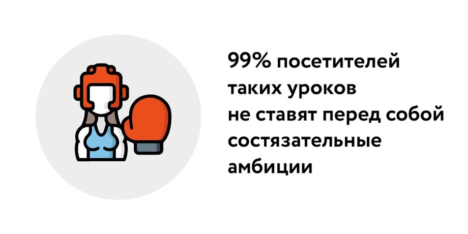 Сразу оговорюсь, что 99% посетителей таких уроков не ставят перед собой состязательные амбиции – особенно если это девушки старше 20. Ведь любые виды единоборств соревновательного уровня – это полноценный спорт, в который приходят в 7–10 лет. Другими словами, боевые искусства привлекают женщин не своей соревновательной составляющей и даже не как инструмент для самообороны, а по другим причинам.