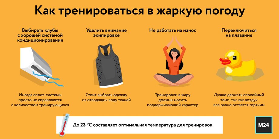 Либо в клубах настолько много одновременно занимающихся людей, что сплит-системы просто не справляются. Это хорошо можно увидеть на групповых уроках, где становится жарко, как в сауне. Значит, при посещении такого клуба, либо если вы занимаетесь у себя дома без кондиционера, нужно соблюдать ряд правил.