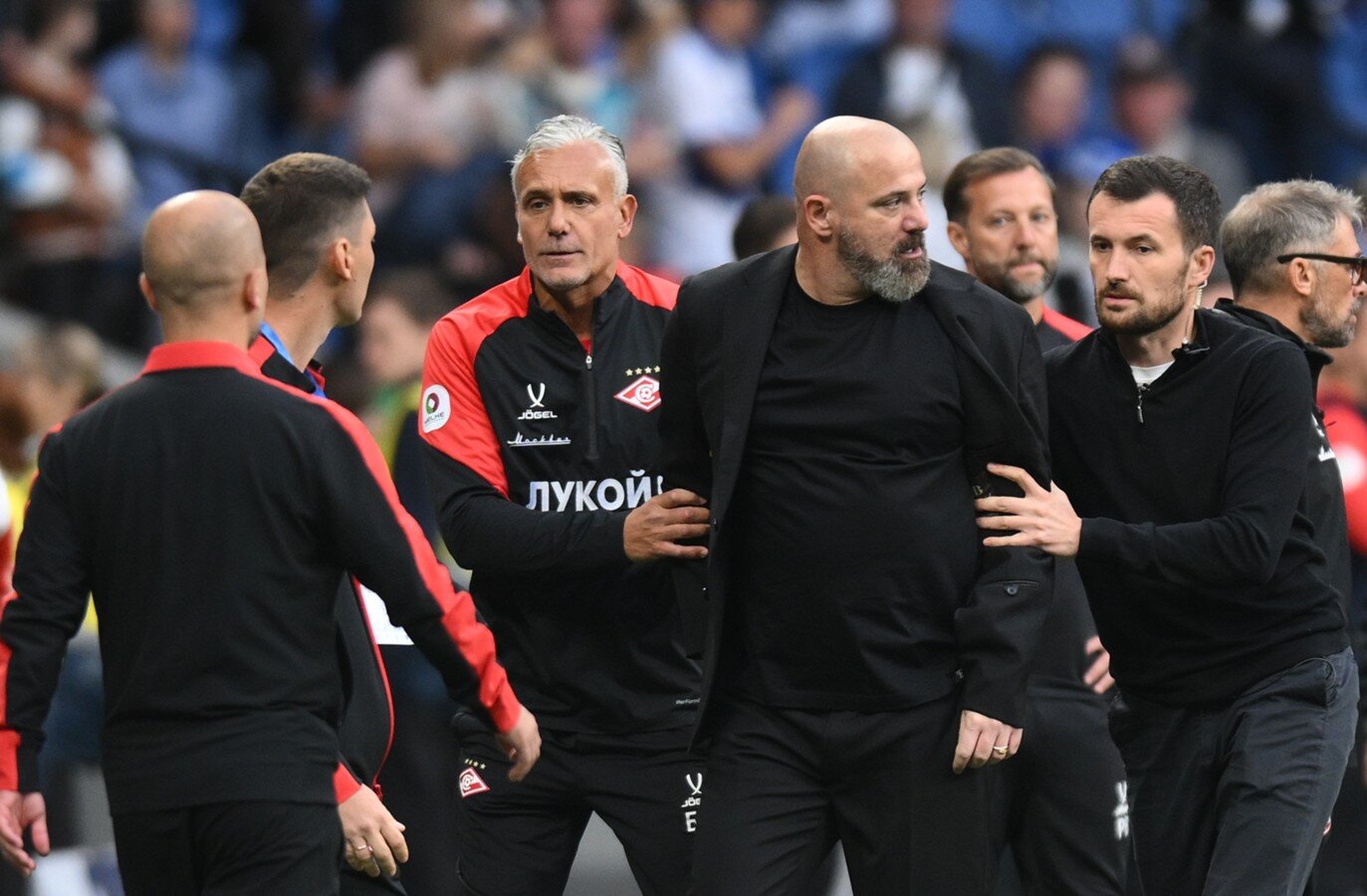 Однако эпизод вызвал ошеломляющий гнев тренерского штаба "Спартака", что тот бросился доказывать свою правоту прямо на поле. Все потому, что за некоторое время до гола Бителло скамейка красно-белых усмотрела фол на своем игроке Маркиньосе. Бешеный рык главный арбитр встречи Егор Егоров погасил красными карточками в адрес тренера вратарей и вожака поднятого бунта – Деяна Станковича собственной персоной. В послематчевом протоколе записано, что серб нецензурно выражался в адрес судьи. В Сети можно найти сообщения телеграм-каналов, что именно сказал Станкович, – здесь публиковать не станем.
