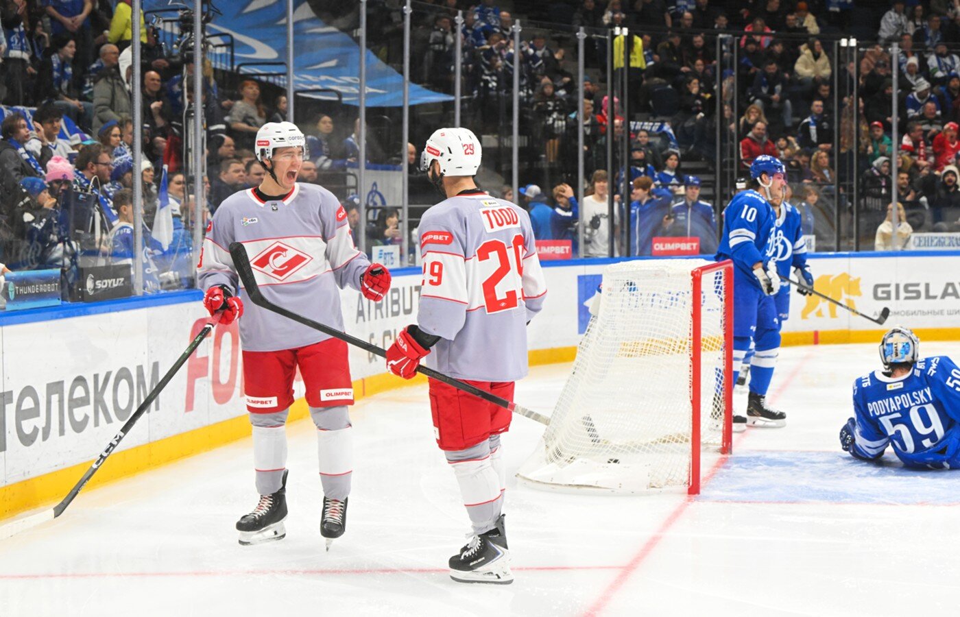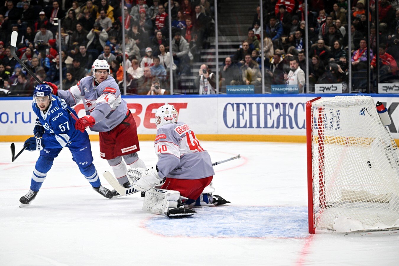 В третьем периоде было не менее весело. "Динамо" вновь сумело догнать оппонентов на 48-й минуте: Никита Гусев к двум результативным передачам добавил точный бросок под перекладину – 3:3. Но бело-голубым не хватило концентрации, и уже через минуту впереди вновь оказался "Спартак". Сработало четвертое звено: Демид Мансуров выгрыз шайбу за воротами и отпасовал на Данила Пивчулина, а тот бросил с острого угла и нашел пространство, не перекрытое голкипером, – 4:3.