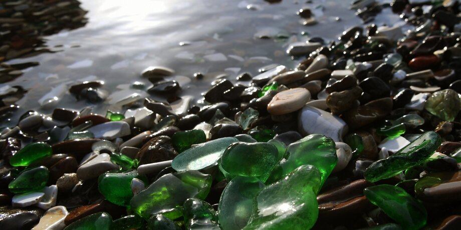 Один из самых необычных пляжей во Владивостоке – бухта Стеклянная – появился здесь в результате настоящей экологической катастрофы. В 1960-х примерно в километре от бухты оборудовали городскую свалку, бутылки с нее приносило сюда течением, они разбивались о скалы, а дальше свое дело сделало море: обточило осколки до округлых камешков, и к сегодняшнему дню здесь образовался пляж с разноцветной стеклянной галькой.