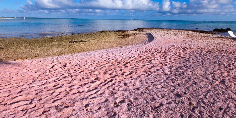 "Гранатовый" песок розово-бордовый, однако не стоит ждать от него слишком яркого цвета как на многих отретушированных фотографиях в интернете. Он скорее пыльно-розовый, хотя после дождя или на закате его цвет будет максимально насыщенным и близким к тому самому гранатовому.