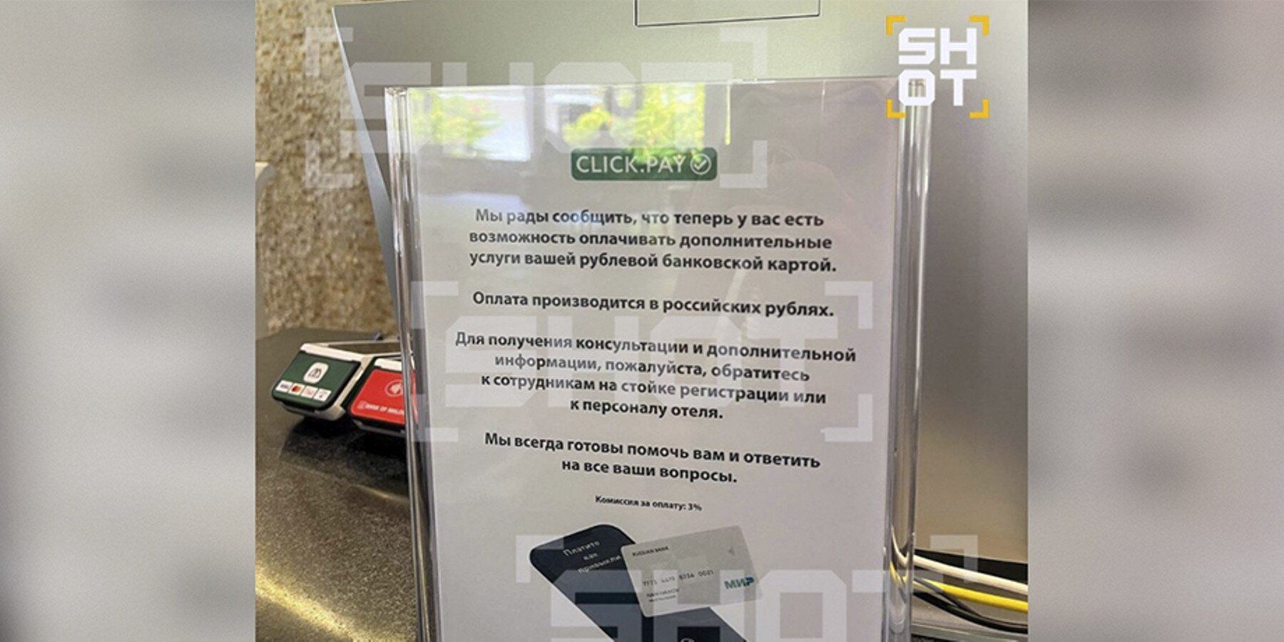 По словам отдыхающих, картой можно оплатить дополнительные услуги в четырехзвездочном отеле, включая массаж и мини-бар. Комиссия за операцию составляет 3%. Техническая возможность стала доступна благодаря платежному сервису ClickPay, который поддерживает рублевые карты. Ранее на курортах Мальдивских островов к оплате принимались только отечественные карты китайской системы UniPay.
