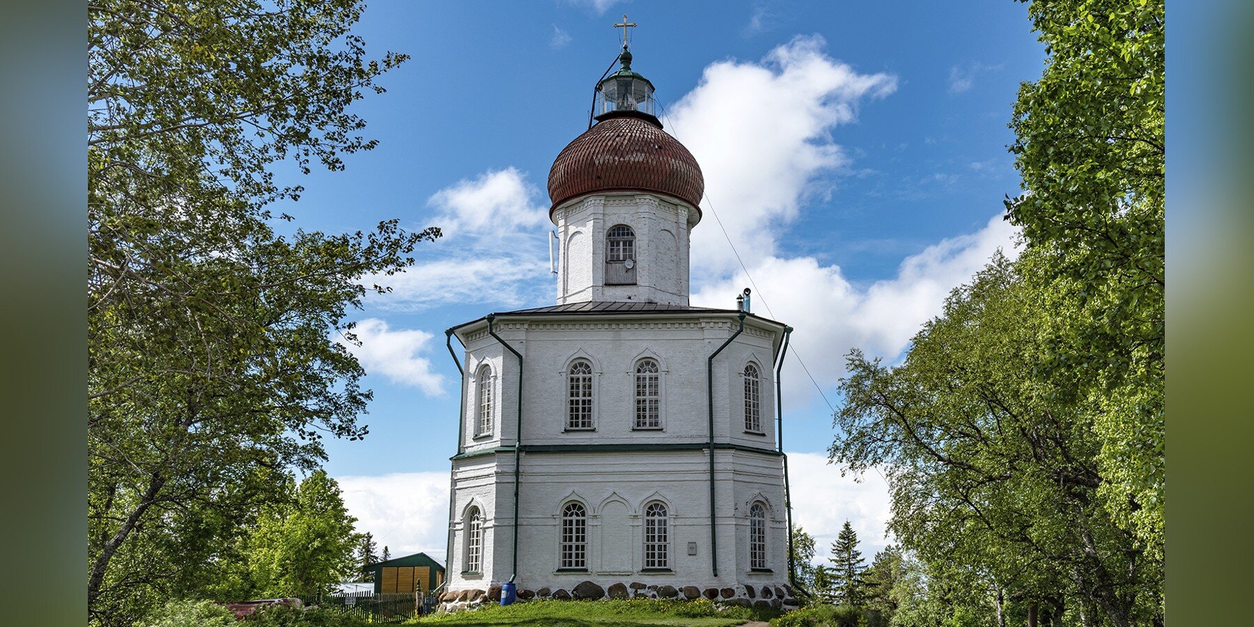 Один из самых необычных маяков в стране находится на территории Соловецкого музея-заповедника. Жизнь Соловецкого монастыря всегда зависела от моря, паломники вместе со всем необходимым для жизни прибывали сюда исключительно по воде, и в середине XIX века здесь, на Церкви Вознесения Господнего, была надстроена башенка маяка. Впрочем, существует мнение, что это могло произойти и в конце XVIII века.