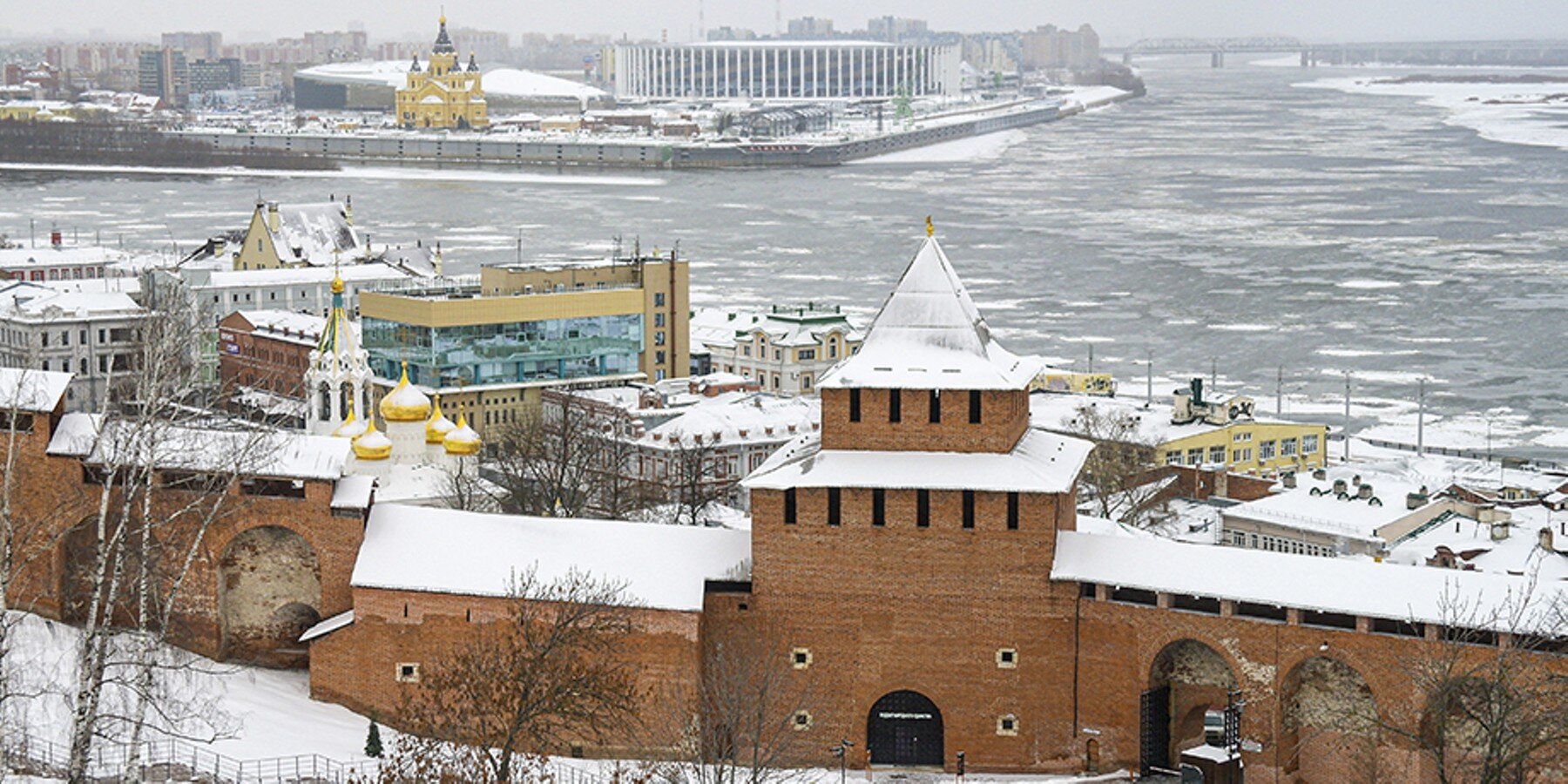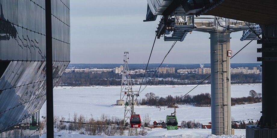 Если хочется забраться еще выше башен, то можно прокатиться на канатной дороге над Волгой. Станция отправления "Нижегородская" расположена на Казанской набережной (это рядом с кремлем), кабинки поднимаются над рекой на несколько десятков метров, но зимой не отапливаются.