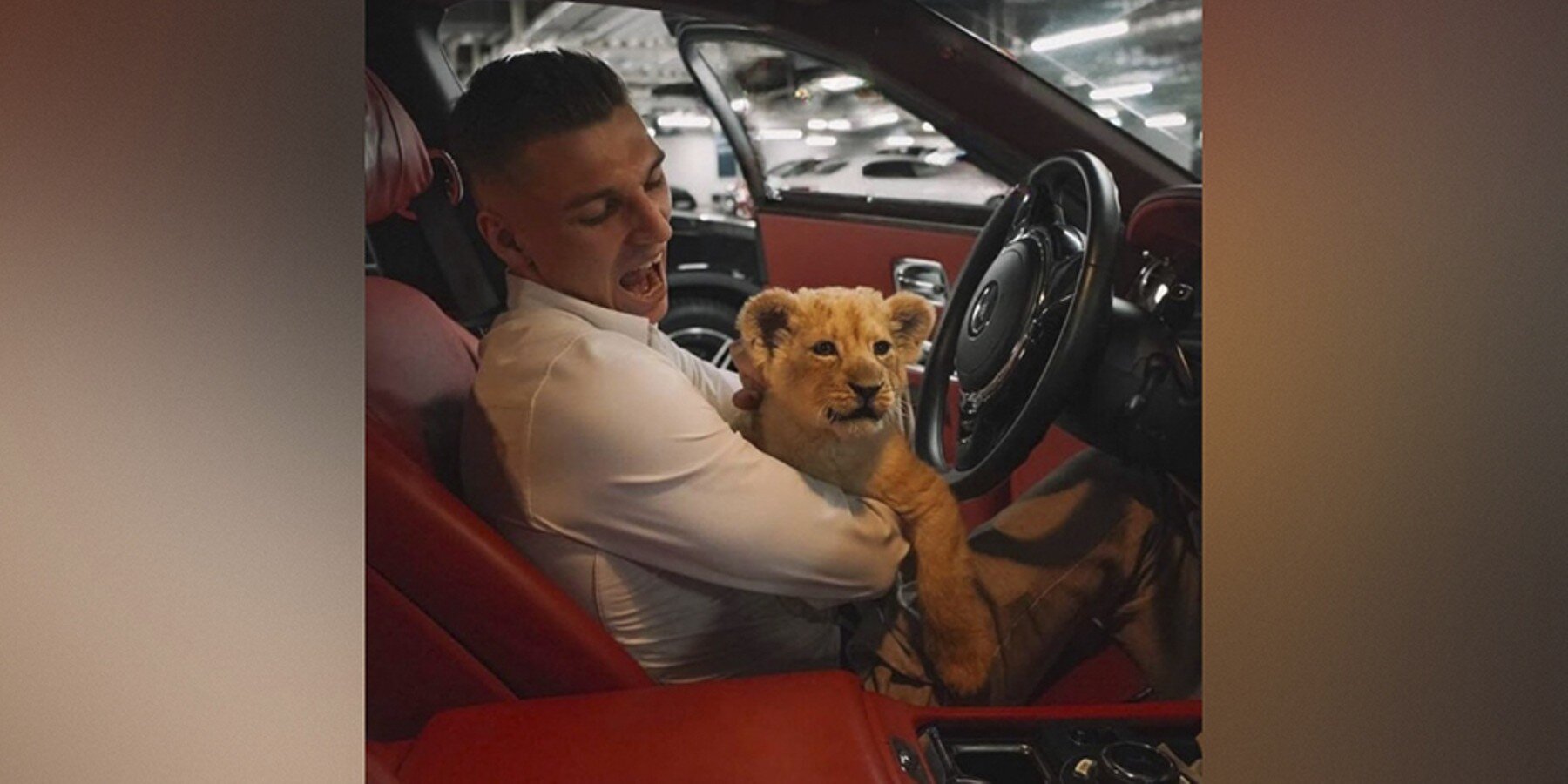 Кроме того, Котов снимал животное в салонах своих дорогих автомобилей.