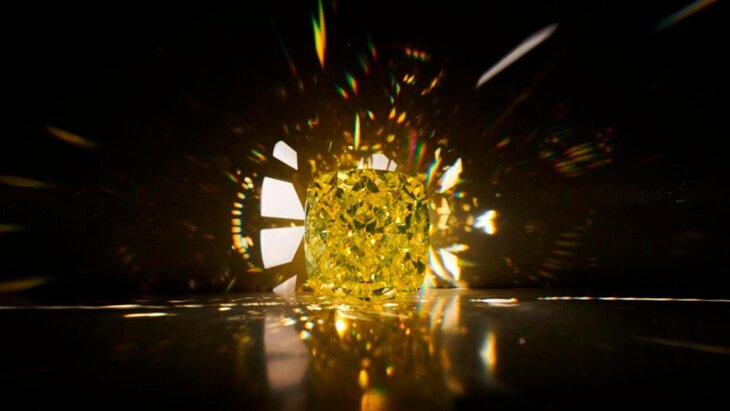 Вес бриллианта редкого цвета Vivid Yellow составляет более 100 карат. Драгоценность получила название "Новое Солнце" в честь алмаза "Рассвет" весом более 200 карат, который также был добыт "Алросой".