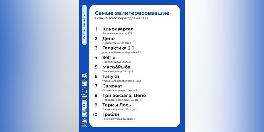 Этим летом "Яндекс Карты" и "Лето в Москве" продолжат партнерство и предложат предпринимателям новые инструменты развития. Прием заявок уже идет на сайте спецпроекта "Время возможностей". Участие в проекте позволит получить информационную и маркетинговую поддержку для бизнеса.